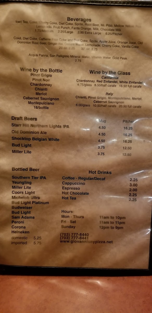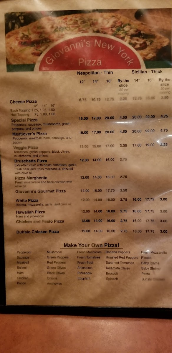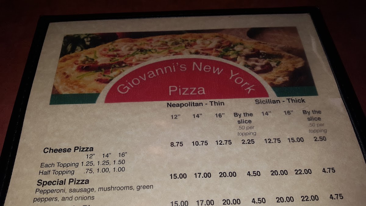 If you’re craving classic slices with that unmistakable East Coast flavor, the Giovanni's New York Pizza Menu is where things get exciting. Tucked along 520 E Market St in Leesburg, VA, this spot brings a little Manhattan attitude to Northern Virginia, and you can taste it in every bite. The menu reads like a love letter to New York-style comfort food - oversized, foldable slices, cheesy pies with perfectly crisp crusts, and toppings that don’t hold back.